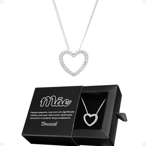 - Colar feminino em aço inoxidável, todo na cor prata, para garantir durabilidade e estilo. - Pingente em aço inox adornado com strass transparente em forma de coração, trazendo elegância e brilho ao acessório. - Caixa premium Orizom Maria, com uma frase especial para sua MÃE, para tornar o presente ainda mais especial.