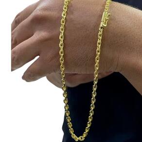 Corrente Cadeado 4mm Luxo Fecho Canhão Banhado a Ouro 18k Detalhes do Produto: Material: ligas metálicas de alta qualidade, especialmente tratadas para fixação e absorção do ouro, com acabamento em verniz protetor. Aparência: visual idêntico ao ouro maciço. Produção: artesanal, com atenção meticulosa aos detalhes. Banho: 10 camadas espessas de ouro 18k, finalizadas com verniz antialérgico . Elos: soldados varia conforme o modelo . Pedras: zircônias brilhantes cravejadas quando aplicável . Tamanhos Disponíveis: Cordões Masculinos: 70cm padrão e 60cm sob consulta/Pedido Via Chat . Cordões Femininos: 50cm padrão e 45cm sob consulta/Pedido Via Chat . Pulseiras: 21cm padrão ; tamanhos de 18cm a 23cm sob consulta/Pedido Via Chat. Pingentes: conforme imagens; consulte para mais detalhes via chat. Espessuras Recomendadas para Cordões / Pingentes: P: 1mm a 4mm M: 4mm a 8mm G: 6mm a 13mm Gg: 12mm a 18mm Incluso na Compra: Saquinho de organza para armazenamento seguro. Caixa elegante, perfeita para presente. Cupom de desconto para a próxima compra. Flyer com outros produtos da coleção. Carta de agradecimento personalizada. Adesivo da marca ToJoia18k. Informações Adicionais: : 6 meses termos acompanham o produto . Devolução: 7 dias para devolução sem questionamentos. Envio: despacho em até 24 horas úteis após confirmação do pagamento. Cuidados com a Peça: Evite contato com produtos químicos; aguarde o perfume secar antes de usar. Evite contato com shampoo, condicionadores e suor excessivo. Armazene em local seco, preferencialmente no saquinho de organza fornecido. Uso no mar e piscina é permitido; lave com água corrente e sabão neutro após. Por que Escolher a ToJoia18k Semi-joias luxuosas que combinam estilo, qualidade e sofisticação. Banho espesso de ouro 18k, garantindo brilho duradouro e acabamento impecável. Design exclusivo e produção artesanal, perfeitos para qualquer ocasião. Materiais premium que asseguram durabilidade. Ao escolher uma semi-joia ToJoia18k, você investe em qualidade, elegância e uma experiência única. Aguardamos sua compra Observação: pode ocorrer variação no fecho raramente . Imagens reais, sem edição. Qualquer dúvida, estamos à disposição para esclarecimentos. Marca: Não Informado Ean: 7899492121187