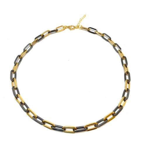 Especificações: Material: Metal antialérgico Característica: Folheado a ouro 18k e Grafite Garantia: 3 meses contra defeitos de fabricação Cor: Dourada - Grafite Medida Corrente: 35 cm + extensor Peso: 0,110g