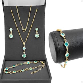 Este conjunto é perfeito para adicionar um toque sofisticado ao seu guarda-roupa, realçando sua beleza natural. Combinando perfeitamente, o colar, brincos e pulseira criam um visual harmonioso que complementa seu estilo pessoal em qualquer ocasião, desde jantares de negócios até encontros românticos.