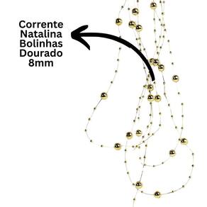 - 01 Unidade Corrente Colar de Contas Natalino Dourado (1,80m) – 2 Tamanhos de Contas