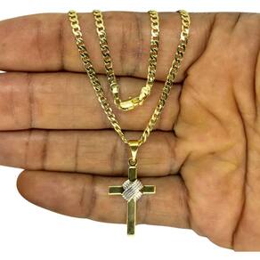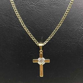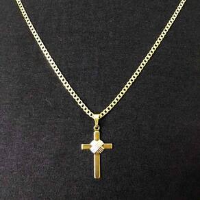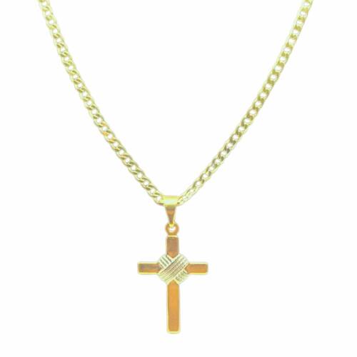 Corrente Cordão Masculina + Pingente Cruz Banhado Ouro 18k 2MM - 80CM