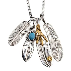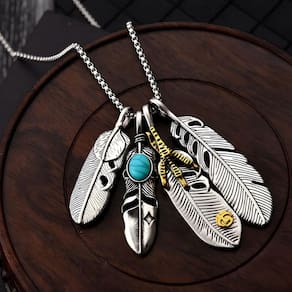 Lindo acessório com pingente penas de águia, um design único e sofisticado que simboliza a autoridade e vitória. Cada pena é cuidadosamente esculpida para capturar a essência da natureza e da autenticidade boêmia. Este colar é perfeito para quem busca se destacar com um toque artístico.