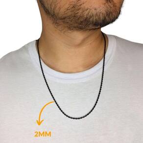 Corrente masculina elo baiano trançado 2mm ou 3mm 60cm aço inox preto antialérgico