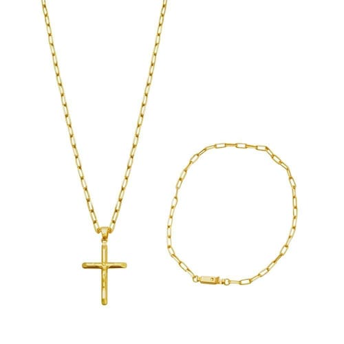 Corrente Cordão Masculino 70Cm + Pingente Crucifixo + Pulseira Cartier Banhado A Ouro 18K Mimoo Joias