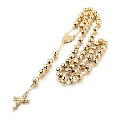 Corrente Cordão Masculino Terço Rosário Aço Banhado a Ouro