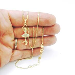 Corrente Feminina 40 a 45cm 1mm Bailarina Folheado Ouro CR886A Corrente Feminina 40 a 45cm 1mm 3Gr + Bailarina Strás 12x35mm Beleza e Qualidade Sempre - Marca: Wnbijouterias - Pingente: Bailarina Strás 12x35mm - Modelo: Corrente Veneziana - Modelo Fecho: Boia - Comprimento Corrente: 40 a 45cm Extensor - Largura: 1mm - Peso: 3+2=5Gr - Acompanha Embalagem Porta Jóia. Descrição Técnica: - Corrente com banho super resistente. - Processo de Folheação em 3 Camadas de Ouro 18k= 750 - Não descasca, não perde a cor, qualidade garantida - Grande tempo de durabilidade. - Acompanha Embalagem Porta Jóia. - Todas as Fotos são Reais do Produto Acompanha: Certificado de - apenas para descascamento do banho da jóia - não cobre defeitos de mau uso, aranhões ou quebra de partes da jóia. Contra Indicações: - Não usar creme, perfume, protetor solar e outros cosméticos por cima da jóia. - Evitar banho de mar Devido a oxidação da água Salgada - Evitar banho de piscina Devido a oxidação do Cloro e outros produtos Marca: Não Informado Ean: 7804493519376