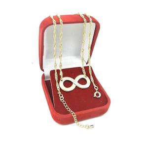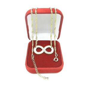 Corrente Feminina 40/45cm 1mm Infinito Folheada Ouro CR259A Corrente Feminina 40/45cm 1mm 5Gr - Que Seja Infinito 15x30mm Beleza e Qualidade Sempre - Marca: Wnbijouterias - Modelo: Singapura - Modelo Fecho: Boia - Comprimento: 40/45cm Extensor - Largura: 1mm - Peso: 5Gr - Acompanha Embalagem/Porta Jóia - SKU Vendedor: CR259A Descrição Técnica: - Produto com banho super resistente. - Processo de Folheação em 3 Camadas de Ouro 18k= 750 - Não descasca, não perde a cor, qualidade garantida - Grande tempo de durabilidade. - Acompanha Embalagem/Porta Jóia - Todas as Fotos são Reais do Produto Acompanha: Certificado de garantia -Garantia apenas para descascamento do banho da jóia. -A garantia não cobre defeitos de mau uso, aranhões ou quebra de partes da jóia. Contra Indicações: - Não usar creme, shampoo, perfume, protetor solar e outros cosméticos por cima da jóia. - Evitar banho de mar Devido a oxidação da água Salgada - Evitar banho de piscina Devido a oxidação do Cloro e outros produtos O que você sempre ganha em nossa loja - Qualidade Banho Super Resistente - Antialérgico Não usamos Níquel em nosso banho - Beleza e Acabamento Caimento perfeito ao usar
