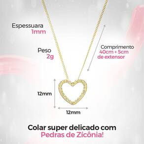 - 1 Pingente Aço Inox Banhado com Strass em Forma de Coração
