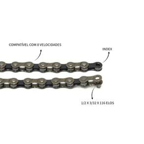 Corrente para bicicleta em aço 08 velocidades indexada para uso em: bicicletas que utilizam catraca ou cassete de 8 velocidades