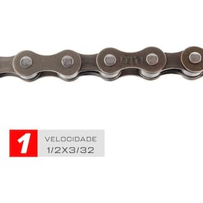 Descrição do Produto Corrente para bicicleta em aço 01 velocidade Embalagem: polybag Para uso em: bmx, beach cruiser, bicicletas elétricas, freestyle, fixa, triciclos Medida: x 1/8 polegadas 114 elos Marca: dto Garantia: 90 dias contra defeitos de fabricação Composição: aço