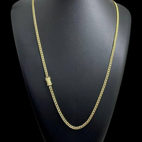 Corrente Grumet 3mm Fecho 750 Luxo Banhado a Ouro 18k Detalhes do Produto: Material: ligas metálicas de alta qualidade, especialmente tratadas para fixação e absorção do ouro, com acabamento em verniz protetor. Aparência: visual idêntico ao ouro maciço. Produção: artesanal, com atenção meticulosa aos detalhes. Banho: 10 camadas espessas de ouro 18k, finalizadas com verniz antialérgico . Elos: soldados varia conforme o modelo . Pedras: zircônias brilhantes cravejadas quando aplicável . Tamanhos Disponíveis: Cordões Masculinos: 70cm padrão e 60cm sob consulta/Pedido Via Chat . Cordões Femininos: 50cm padrão e 45cm sob consulta/Pedido Via Chat . Pulseiras: 21cm padrão ; tamanhos de 18cm a 23cm sob consulta/Pedido Via Chat. Pingentes: conforme imagens; consulte para mais detalhes via chat. Espessuras Recomendadas para Cordões / Pingentes: P: 1mm a 4mm M: 4mm a 8mm G: 6mm a 13mm Gg: 12mm a 18mm Incluso na Compra: Saquinho de organza para armazenamento seguro. Caixa elegante, perfeita para presente. Cupom de desconto para a próxima compra. Flyer com outros produtos da coleção. Carta de agradecimento personalizada. Adesivo da marca ToJoia18k. Informações Adicionais: : 6 meses termos acompanham o produto . Devolução: 7 dias para devolução sem questionamentos. Envio: despacho em até 24 horas úteis após confirmação do pagamento. Cuidados com a Peça: Evite contato com produtos químicos; aguarde o perfume secar antes de usar. Evite contato com shampoo, condicionadores e suor excessivo. Armazene em local seco, preferencialmente no saquinho de organza fornecido. Uso no mar e piscina é permitido; lave com água corrente e sabão neutro após. Por que Escolher a ToJoia18k Semi-joias luxuosas que combinam estilo, qualidade e sofisticação. Banho espesso de ouro 18k, garantindo brilho duradouro e acabamento impecável. Design exclusivo e produção artesanal, perfeitos para qualquer ocasião. Materiais premium que asseguram durabilidade. Ao escolher uma semi-joia ToJoia18k, você investe em qualidade, elegância e uma experiência única. Aguardamos sua compra Observação: pode ocorrer variação no fecho raramente . Imagens reais, sem edição. Qualquer dúvida, estamos à disposição para esclarecimentos.