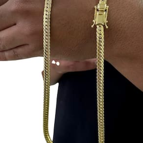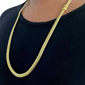Corrente Grumet Cubano 7mm Fecho 750 Banhado a Ouro 18k Detalhes do Produto: Material: ligas metálicas de alta qualidade, especialmente tratadas para fixação e absorção do ouro, com acabamento em verniz protetor. Aparência: visual idêntico ao ouro maciço. Produção: artesanal, com atenção meticulosa aos detalhes. Banho: 10 camadas espessas de ouro 18k, finalizadas com verniz antialérgico . Elos: soldados varia conforme o modelo . Pedras: zircônias brilhantes cravejadas quando aplicável . Tamanhos Disponíveis: Cordões Masculinos: 70cm padrão e 60cm sob consulta/Pedido Via Chat . Cordões Femininos: 50cm padrão e 45cm sob consulta/Pedido Via Chat . Pulseiras: 21cm padrão ; tamanhos de 18cm a 23cm sob consulta/Pedido Via Chat. Pingentes: conforme imagens; consulte para mais detalhes via chat. Espessuras Recomendadas para Cordões / Pingentes: P: 1mm a 4mm M: 4mm a 8mm G: 6mm a 13mm Gg: 12mm a 18mm Incluso na Compra: Saquinho de organza para armazenamento seguro. Caixa elegante, perfeita para presente. Cupom de desconto para a próxima compra. Flyer com outros produtos da coleção. Carta de agradecimento personalizada. Adesivo da marca ToJoia18k. Informações Adicionais: : 6 meses termos acompanham o produto . Devolução: 7 dias para devolução sem questionamentos. Envio: despacho em até 24 horas úteis após confirmação do pagamento. Cuidados com a Peça: Evite contato com produtos químicos; aguarde o perfume secar antes de usar. Evite contato com shampoo, condicionadores e suor excessivo. Armazene em local seco, preferencialmente no saquinho de organza fornecido. Uso no mar e piscina é permitido; lave com água corrente e sabão neutro após. Por que Escolher a ToJoia18k Semi-joias luxuosas que combinam estilo, qualidade e sofisticação. Banho espesso de ouro 18k, garantindo brilho duradouro e acabamento impecável. Design exclusivo e produção artesanal, perfeitos para qualquer ocasião. Materiais premium que asseguram durabilidade. Ao escolher uma semi-joia ToJoia18k, você investe em qualidade, elegância e uma experiência única. Aguardamos sua compra Observação: pode ocorrer variação no fecho raramente . Imagens reais, sem edição. Qualquer dúvida, estamos à disposição para esclarecimentos. Marca: Não Informado Ean: 7891907981508