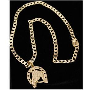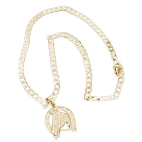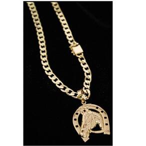 CORRENTE GRUMET PITBULL FLAT TRAVA LATERAL (7MM) & PINGENTE CAVALO E FERRADURA 3 (G) - BANHADO EM OURO18K