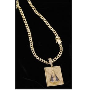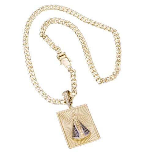 CORRENTE GRUMET PITBULL FECHO LATERAL DUPLO (8MM) & PINGENTE NOSSA SENHORA APARECIDA CRAVEJADO BRANCO - BANHADO EM OURO18K