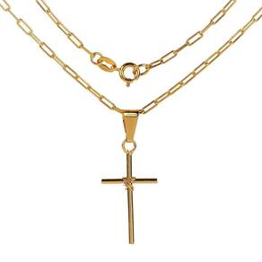 Corrente Masculina 50cm 2mm + Cruz 30mm Folheado Ouro CR541-marca: Wnbijouterias-modelo: 1x1 Cadeado-comprimento: 50cm 4Gr-largura: 2mm-modelo Fecho: Boia-pingente: Cruz 15x30mm-peso: 4+ 2Gr-SKU Vendedor: CR541Descrição Técnica:- Produto com banho super resistente.- Processo de Folheação em 3 Camadas de Ouro 18k= 750 - Não descasca, não perde a cor, qualidade garantida- Grande tempo de durabilidade.- Acompanha Saquinho porta Jóia.- Todas as Fotos são Reais do ProdutoAcompanha: Certificado de garantiaOBS: Garantia apenas para descascamento do banho da jóia. A garantia não cobre defeitos de mau uso, aranhões ou quebra de partes da jóia.Contra Indicações:- Não usar creme, perfume, protetor solar e outros cosméticos por cima da jóia.- Evitar banho de mar Devido a oxidação da água Salgada - Evitar banho de piscina Devido a oxidação do Cloro e outros produtos