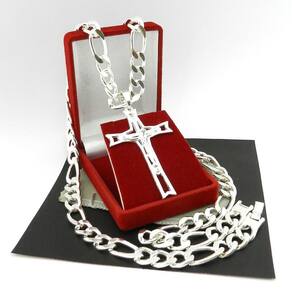 Corrente Masculina 60Cm 1Cm Cruz Folheada Prata Cr104