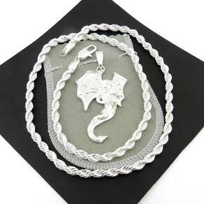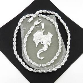 Corrente Masculina 60cm 5mm + Dragão Folheada Prata CR274 Corrente Masculina 60cm 5mm 41Gr + Dragão 30x50mm 15Gr - Fecho Mosquetão - Marca: Wnbijouterias - Pingente: Dragão 30x50mm 15Gr- Modelo: Cordão Baiano - Modelo Fecho: Mosquetão - Comprimento: 60cm - Largura: 5mm - Peso: 41+15Gr - Acompanha Embalagem/Porta Joias- SKU Vendedor: CR274Descrição Técnica:- Produto com banho super resistente.- Processo de Folheação em varias camadas Prata Pura 1000 - Não descasca, não perde a cor, qualidade garantida- Grande tempo de durabilidade.- Acompanha Saquinho porta Jóia- Todas as Fotos são Reais do ProdutoAcompanha: Certificado de garantia-garantia apenas para descascamento do banho da jóia. -A garantia não cobre defeitos de mau uso, aranhões ou quebra de partes da jóia.Contra Indicações:- Não usar creme, shampoo, perfume, protetor solar e outros cosméticos por cima da jóia.- Evitar banho de mar Devido a oxidação da água Salgada - Evitar banho de piscina Devido a oxidação do Cloro e outros produtos O que você sempre ganha em nossa loja- Qualidade Banho Super Resistente - Antialérgico Não usamos Níquel em nosso banho - Beleza e Acabamento Caimento perfeito ao usar