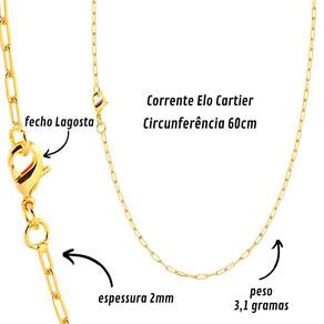 Especificações Tamanho De comprimento: 60cm Peso: 3,1 Fecho: Lagosta Espessura Do elo: 2mm Tipo do Elo: Cartie Banho de Camadas: 10 banho de camadas Verniz: Potencializado