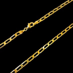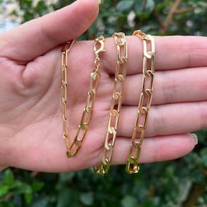 Corrente Grumet Elo Longo Banhada a Ouro 18kA corrente grumet elo longo banhado a ouro 18k é uma peça única e sofisticada, que confere elegância e requinte a qualquer look, uma peça que nunca sai de moda.Produzida com materiais nobres e acabamento brilhante, essa corrente é uma excelente opção para quem busca uma joia elegante e durável, que valorize seu estilo e personalidade,Seu banho de ouro 18k confere um acabamento refinado e durável, que mantém a beleza da peça por muitos anos.Ao adquirir uma corrente grumet elo longo banhado a ouro 18k, o cliente está investindo em uma joia de qualidade, que foi produzida com cuidado.Características da Corrente Grumet Banhada a Ouro 18kMaterial: Metal de Alta FusãoAcabamento: 10 banhos de Ouro 18k PremiumVerniz: Antialérgico, pontencializado diamondElo: Grumet LongoComprimento: 60cm Largura do elo: 6mmFecho: LagostaPeso: 18g Garantia de 1 ano para o banho. Lembrando que não cobre defeitos decorrentes de mau uso da peça. Cuidado com suas peças:Guarde em local seco, evite contato com: água do mar, perfumes, cosméticos, spray fixador e produtos químicos.Limpe com tecido macio e guarde-os sempre após o uso.Assim você estará preservando a qualidade de seu acessório.