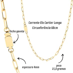 Especificações Amanho De comprimento: 60cm Peso: 15,08 Fecho: Gaveta Espessura Do elo: 4mm Tipo do Elo: Cartie Banho de Camadas: 10 banho de camadas Verniz: Potencializado