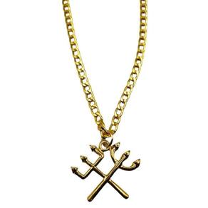 Corrente com pingente tridentes pomba gira e exu 3 cm dourado