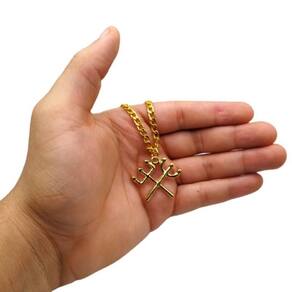 Corrente pingente tridentes pomba gira e exu 3 cm dourado