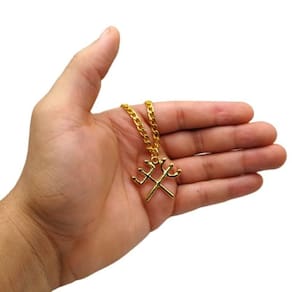 Corrente com pingente tridentes pomba gira e exu 3 cm dourado correntes com ótima qualidade e o produto é lindo e vai impressionar você vai combinar com você, com este lindo colar 100% e com um símbolo de proteção presenteie uma pessoa querida com os nossos produtos. Cordão de pescoço olho grego com pingente de 2 cm e cordão de 40 cm corrente com pingente ogum niquelado corrente 30 cm pingente 3. 5 x 0. 2 x 4. 0 cm Marca: Lua Mística - 100% Original - Loja Oficial