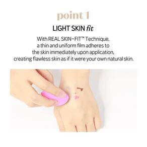 - Ajuste leve à pele: com a técnica de pele real, uma película fina e uniforme adere à pele imediatamente após a aplicação, criando uma pele impecável como se fosse sua própria pele natural
