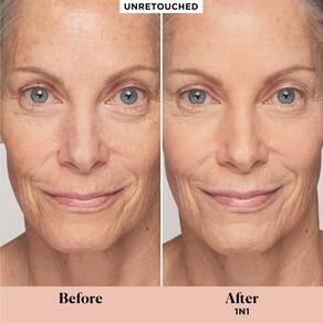 - Infundida com 85% de ingredientes para a pele, esta fórmula à prova de vincos e sem bolo esconde imediatamente olheiras, vermelhidão, imperfeições e manchas escuras. É clinicamente demonstrado que melhora a aparência da pele nua instantaneamente e ao longo do tempo, reduzindo a aparência de linhas finas e rugas.
