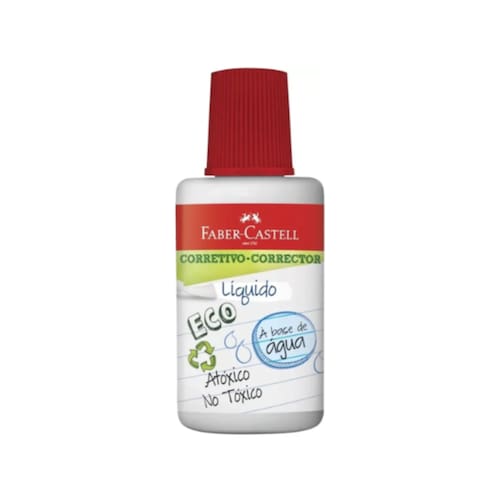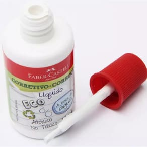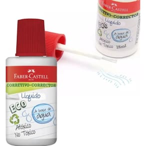 Branquinho, o Corretivo Líquido Eco Faber-Castell à base de água atóxico conta com 18ml.