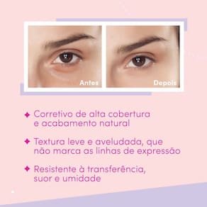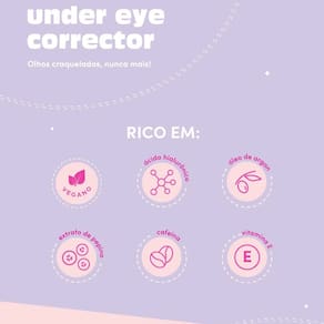 O Corretivo Líquido Ruby Kisses Under Eye Cor 10 oferece uma alta cobertura que não craquela e nem marca as linhas de expressão, camuflando olheiras e imperfeições do jeitinho que a gente gosta, com naturalidade e eficácia. É resistente à transferência, suor e umidade, mas, ao mesmo tempo, sai com facilidade quando a área é higienizada com água e sabonete facial. E não para aí, o corretivo é rico em Ácido Hialurônico, Extrato de pepino, Óleo de Argan, Cafeína e Vitamina E, ativos que juntos cuidam da pele, hidratam, estimulam a região e melhoram a aparência das olheiras. Maquiagem que cuida da pele, tudo para mim