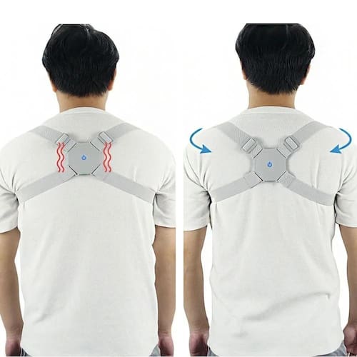 Corretor de postura inteligente vibratório com sensor ajustável O corretor postural inteligente é o que você precisa para se livrar das dores nas costas causadas pela postura inadequada. Ele possui sensor vibratório que identifica e sinaliza sempre que sua coluna e ombros estiverem em postura incorreta. O produto é unissex e é recomendado para todas as idades. Ele conta com alça ajustável que se adapta perfeitamente a qualquer tipo de corpo. Além disso, o corretor postural é recarregável e pode ser utilizado por até 15 dias seguidos sem a necessidade de uma nova carga.
