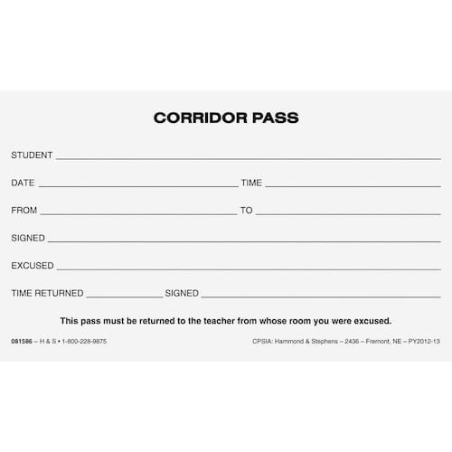 Hammond & Stephens Corridor Pass, 3 x 5 polegadas, 100 folhas por bloco, pacote com 10 almofadas