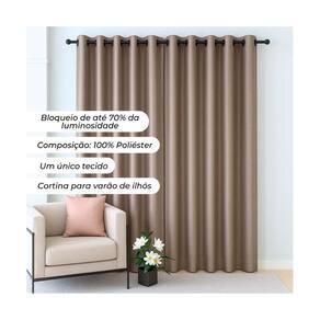 A cortina Corta Luz é funcional e pode ser usada sozinha ou combinadas com outra linha. Com o objetivo de amenizar ou bloquear até 70% a claridade e tornar o ambiente bem escurinho e relaxante, as cortinas desta coleção se inspiram na beleza das noites e proporcionam agradáveis momentos de aconchego. Pode ser utilizado em seu quarto, sala ou escritório. Tecido 100% poliéster com toque liso e sofisticado. A cortina é composta por 2 partes de 2,10m de largura e 2,50m de altura possuindo bainha em suas laterais e barra na parte inferior. Indicado para varão de 2,00m para maior franzimento, contém 28 ilhóses cromados. Fotos Ilustrativas, não acompanha varão