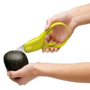 Este utensilio inovador da chef'n corta, descaroça e escava seu abacate com eficácia. Possui uma lâmina de segurança e uma colher flexível que se adapta a todos os tamanhos de abacates. O cortador de abacate, o pitter e a colher podem ser lavados na lava-louças para uma limpeza fácil e conveniente. Limpeza e conservação lave sob água corrente, de preferência morna, e passe gentilmente esponjas na parte mais suave, usando detergente. Enxague bem, para que todo o sabão seja retirado do produto. Pode ser levado a lava-louças. Medidas: altura: 22cm largura: 8cm peso: 82g material: polipropileno e aço inoxidável marca: chef'n cor: verde garantia: 6 meses sobre a chef'n: a chef'n é uma marca americana revolucionária no quesito funcionalidade, design e tecnologia. Seus produtos foram pensados e projetados para serem divertidos, modernos e funcionais e também para incentivar a exploração e experiências compartilháveis na cozinha. Para chef'n cozinhar pode ser tão divertido quanto se sentar a mesa com a família e amigos. Ean: 0838485020264