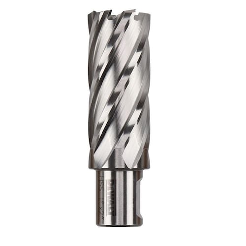 Cortador ANULAR HSS DEWALT DWAC02016 de 1" X 2" Weldon 3/4" - Construção durável - Feito de aço de alta velocidade para maior durabilidade e vida útil - Corte rápido, eficiente e suave - Dentes retificados com precisão diminuem a vibração, cortam rapidamente e cortam - Projetado para uma ejeção rápida ideal de cavacos - A geometria de canal otimizada permite a expulsão de cavacos do furo durante a perfuração - Ajuste compatível - Haste compatível com furadeiras magnéticas equipadas com 3/4 pol. Haste Weldon - Deep Cuts - Pode ser usada para fazer furos de até 2 pol. (50,8 mm) de profundidade
