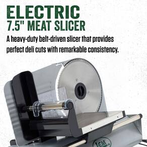 - Sua delicatessen doméstica: nossa fatiadora é tudo que você precisa para fazer cortes perfeitos com todas as suas carnes e queijos favoritos. O cortador de carne de 7 ½” é ideal para caçadores e chefs que gostam de processar seus próprios alimentos de qualidade.