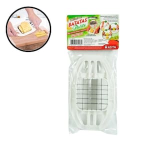 Cortador de Batatas Plástico 17,5x3,5cm Pali Cortador de Batata - Ideal para efetuar o corte de batatas;\n- Fatia legumes de forma prática;\n- Fácil manuseio;]\nEspecificações:\nMarca : KEITA\nTipo de material : Plástico e Inox\nCores ou Estampa : Branco\nDimensões do Produto : 3,5 X 17,5 X 10 CM\nDimensões da Embalagem : 26 X 12 X 3,5 CM\nPeso Bruto (Gramas) : 0.070