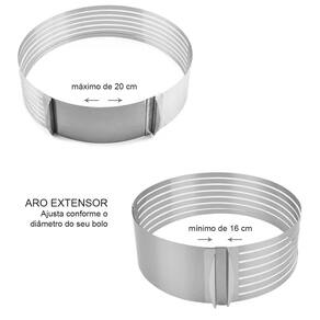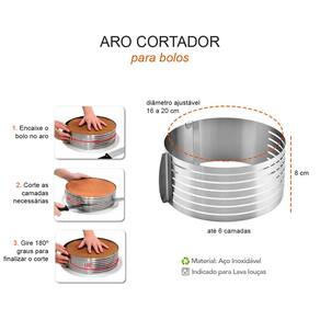Contem: 1 Aro Cortador Diametro: 16 a 20 cm Altura: 8 cm Material: Aço Inoxidavel