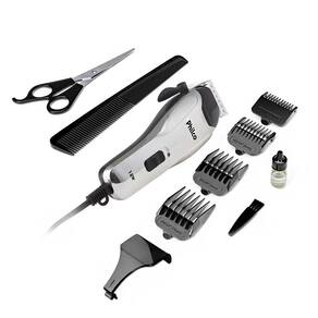 - 1 Cortador de Cabelos, 1 Pente de Corte 3mm, 1 Pente de Corte 6mm, 1 Pente de Corte 9mm, 1 Pente de Corte 12mm, 1 Protetor de Lâminas, 1 Tesoura, 1 Pente para Cabelo, 1 Escova para Limpeza, 1 Óleo Lubrificante, Manual de Instrução