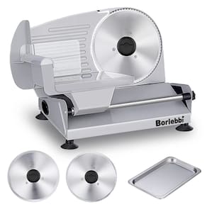 Este é um cortador de carne multifuncional com potência potente de 200 W. A espessura embutida deste fatiador de alimentos pode ser ajustada com o botão de controle para Alcance facilmente a precisão desejada. Pode cortar não apenas carne, mas também frutas, legumes, pão, queijo, presunto, etc. O design compacto do cortador permite que ele funcione na maioria dos armários e bancadas de cozinha. O design removível permite uma limpeza completa. Especificações do produto: Potência: 200 watts Tensão: 120 volts Hertz: 50/60 Hz Dimensões gerais: 36 x 24,5 x 31 cm Diâmetro da lâmina: 19 cm Espessura máxima da fatia: 1,5 cm - Fatiador profissional: o poderoso fatiador de carne de 200 watts tem recursos e velocidade suficientes para fatiar uma variedade de alimentos. O botão de controle de espessura pode ajustar a espessura na faixa de cerca de 0-15 mm. O fatiador de alimentos facilita seu trabalho na cozinha - Mais acessórios: a lâmina é uma das partes principais do fatiador, então equipamos duas lâminas de aço inoxidável, que são mais adequadas para fatiar diferentes alimentos. A bandeja de aço inoxidável se encaixa perfeitamente no fatiador para segurar os pedaços de comida fatiados - Fácil de limpar: o design sem costura e removível facilita o saneamento. A lâmina, o transporte de alimentos, a extensão da haste deslizante e o empurrador de alimentos são removíveis, o que permite uma limpeza completa e saneamento - Proteção de segurança: os pés de ventosa antiderrapantes mantêm o fatiador de delicatessen estável durante o trabalho, e o empurrador de alimentos também atua como um protetor de lâmina para ajudar a manter seus dedos seguros. O interruptor liga/desliga oferece segurança adicional - Design durável e compacto: o fatiador de carne é feito de alumínio fundido de qualidade premium, que não é apenas superdurável, mas também à prova de ferrugem e fácil de limpar. Com seu design compacto, este cortador de delicatessen é pequeno o suficiente para a maioria dos armários e bancadas