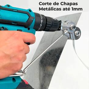 Cortador de Chapas Aço Cobre Metal para Parafusadeiras - Marca: Vaz - Referência: 21718 - Compatível com parafusadeiras a bateria - Indicado para corte de metais, conforme espessura máxima especificada abaixo:: :: Chapa de Ferro: de 0.2 a 1mm :: Chapa de Aço: de 0.2 a 0.8mm :: Chapa de Cobre 0.3 a 1.2mm :: Chapa de Alumínio: 0.3 a 1.2mm - Não indicado para corte de aço inox - Feita de Aço e Ferro proporcionando maior resistência e durabilidade - Lâminas afiadas - Ferramenta segura sem contato com as lâminas - Fácil instalação economize tempo e esforço - Se você achar que o cortador não está afiado, verifique se há uma folga entre as duas engrenagens. Se houver uma folga entre as engrenagens, você poderá ajustar a folga através da porca da engrenagem - Peso bruto: 500 gramas - Garantia: 90 dias Itens inclusos: - 1 Cortador de chapas para furadeira / parafusadeira - 2 Chaves de boca - 1 Chave Allen - 1 Haste / Suporte de Fixação - 1 Mola para o suporte