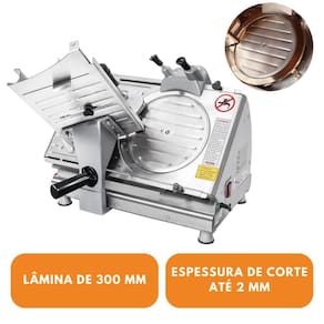O Cortador e Fatiador de frios elétrico Bermar é fabricado em Inox e possui um corte seguro e preciso, sua lâmina é de 300 milímetros e seu motor de 494 watts tem capacidade de fatiar peças de até 16x19 centímetros sem ficar retalhos. Fácil de limpar e projetado para operação contínua.