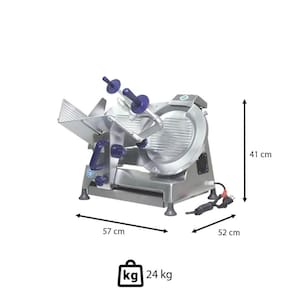 DIMENSÕES - Dimensões do produto (Compr. x Larg. x Alt.): 570 x 520 x 410 mm; - Dimensões do corte (Larg. x Alt.): 200 x 190 mm ( 200mm); - Dimensões da faca: 300 mm.