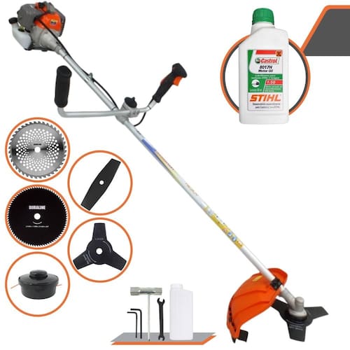 Roçadeira Lateral Vulcan VR330P À Gasolina2 Tempos 33cc 1,2HP+ Faca 2 Pontas 330mm + Faca 40 Dentes 255mm + Faca 80 Dentes 255mm + Óleo Castrol Stihl 500ml