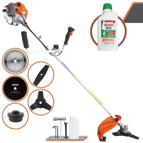 Roçadeira Vulcan Lateral VR430P 2T 43cc 1,7HP À Gasolina Com Faca 3 Pontas + Faca 2 Pontas 330mm + Faca 40 Dentes 255mm + Faca 80 Dentes 255mm+ ÓLEO CASTROL STIHL
