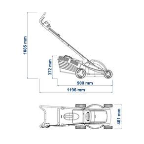 Especificações técnicas: Motor com 1300 W de potência, 60 Hz. Diâmetro de corte de 350 mm. Fixa-cabo, evita que o cabo elétrico desconecte do plug. Design e ergonomia que facilitam o uso. Chassi plástico de alta resistência. Lâmina posicionada acima do nível do chassi, evitando que objetos sejam lançados em direção ao operador e pessoas próximas. Peças metálicas possuem pintura eletrostática a pó, que tem uma melhor apresentação visual e maior proteção contra oxidação. Interruptor de duplo acionamento. Braço metálico, com isolamento. Alça para facilitar o transporte. Prático sistema de regulagem da altura de corte. Três alturas de corte: 23 mm, 38 mm e 53 mm. Cesto coletor rígido com capacidade de 18 L. Área de corte indicada de 1.300 m². Produto fabricado no Brasil. Rede de Assistência Técnica em todo o Brasil.