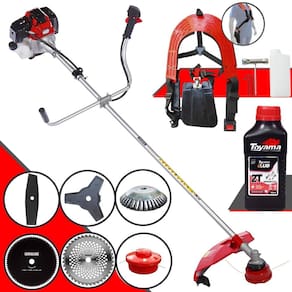 Roçadeira À Gasolina Toyama RT52L 52cc 2HP 2T Com Lâmina 3 Pontas + Faca 2 Pontas 330mm + Faca 40 Dentes 255mm + Faca 80 Dentes 255mm + Escova Rotativa 38 Cerdas + Óleo Toyama FG50 500ml