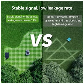 Equipado com tração em duas rodas, suporta inclinações de até 45% (24°) e modo rápido para áreas pequenas, integrando sensores de colisão para mudança de direção e evasão de obstáculos. Classificação IPX6 permite uso em chuva leve e limpeza com mangueira, com detecção automática de rupturas no fio perimetral de 120 metros, identificando localização via app para reparo simples com conector fornecido.